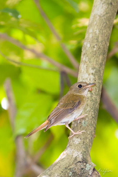 The Brown-Chested Jungle Flycatcher is a winter migrant to Singapore. I started noticing it about a week ago at my fence perching on its favourite tree ( or branch ) scooping insects or worm from the ground. Brown-Chested Jungle Flycatcher is rather predictable, I saw it around the same area at about the same time.