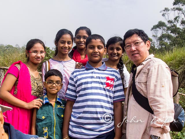 The town of Munnar in the state of Kerala in India is near Eravikulam National Park. Eravikulam National Park is famed to be the only place in India with the guarantee sighting of the Nilgiri tahrs , endemic to the Western Ghats. A 15 minutes drive from the hotel in Munnar took us to the entrance of the park where a special vehicle brought us up to 1700 m winding through the scenic tea plantations and mountain ranges. The 97 Square Kilometer park is comprised of grassland ecosystem with an average elevation of 2000 m and the highest peak being Anaimudi at 2695 meters. Weather was cool even in the midst of the heatwave in India that killed more than 1000 people in May 2015. Being the first visitor, we saw 2 Nilgiri tahrs- Saddle back on the drive up and 2-3 more animal on the walk up to the 1800m where the boundary of the tourist zone is. The slow walk from 1700m to 1800 m was gradual and relaxing with the fresh air, alpine flora and fauna along side the road and the beautiful tea plantations below us. On the first day, I carried my 600 m lens up the hill . While I did not use it for the Nilgiri tahrs, I did use it for the few mountain birds near the waterfall and the top of the boundary of the tourist zone. About 120 species of birds have been recorded in the park.