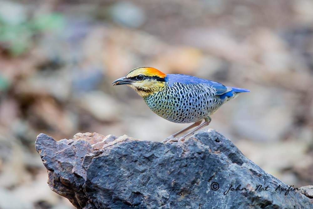 We sat quietly on rocky dry stream, and the birds would come down to drink. The Green Magpie and Cinnamon Trogon were a few examples. The Blue-Pitta and White-Fronted Scops-owl also appeared in that hot season.