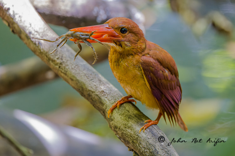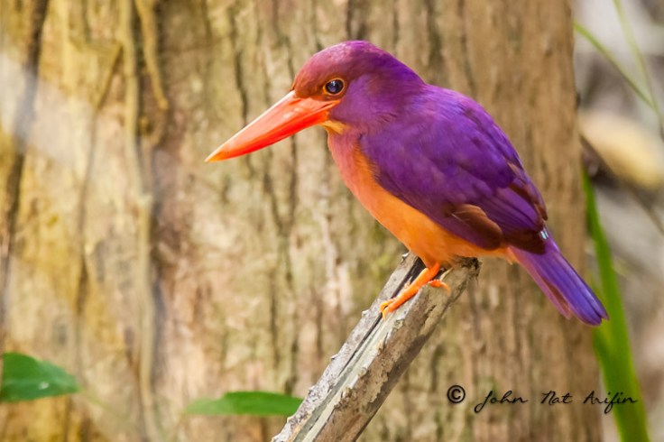 I first saw the beautiful resident race of purple-ish Ruddy Kingfisher in Rainforest Discovery Center RDC in East Sabah in October 2011. It is common in the under-storey of the mangrove and Nipah palm forest around the coast of Borneo. This particular bird was feeding near the fresh water pond.