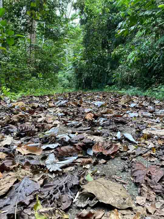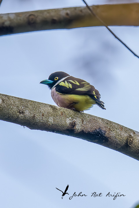 The next day, at 6 am, we visited the Halazah Waterfall, a popular tourist spot. Since the path to the trailhead was not passable on foot, we took a short dinghy ride instead. Upon arrival, we saw two Black-and-yellow Broadbills and hiked along the trail covered in dried leaf litter.