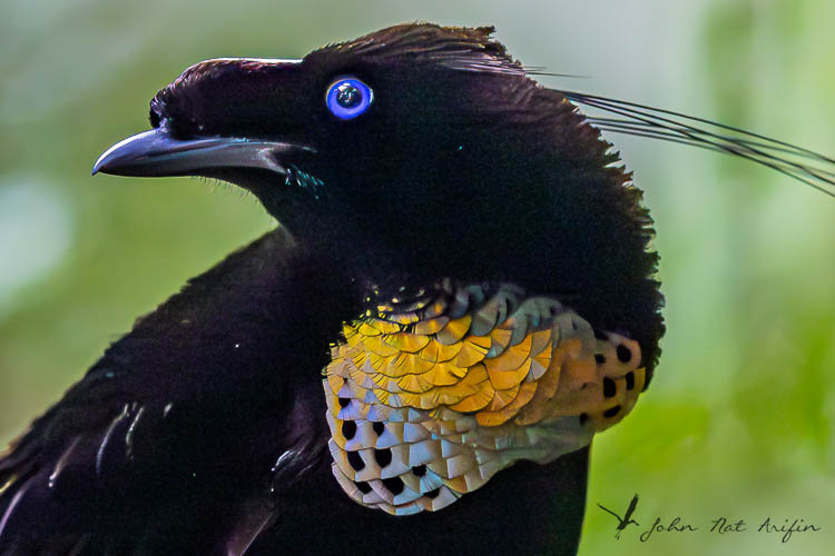 - Arfak Parotia with a beautiful display of iridescent breast- patch.