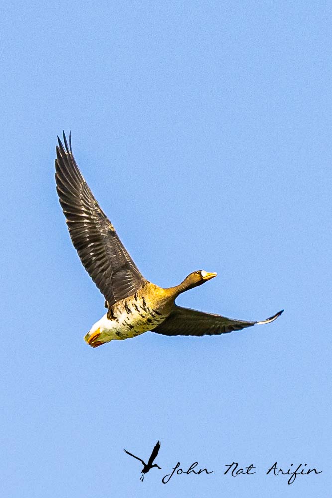 From 10:30 a.m. to 12:30 p.m., we stood at the water’s edge, lenses trained on wings and ripples. The air was filled with a wild chorus—geese calling across the water, the whistle of Northern Pintails, and the distant silhouette of Black-eared Kite gliding above the horizon. Every click of the camera felt like a heartbeat captured.